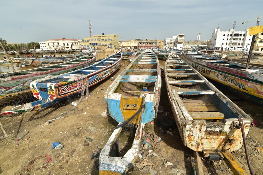 Saint-Louis, au milieu des pirogues du port Lundi 24 septembre. Pour accéder au quartier des pêcheurs situé sur la Langue de Barbarie, il faut passer un pont, pas le fameux pont Faidherbe qui fait la fierté de la ville, mais un