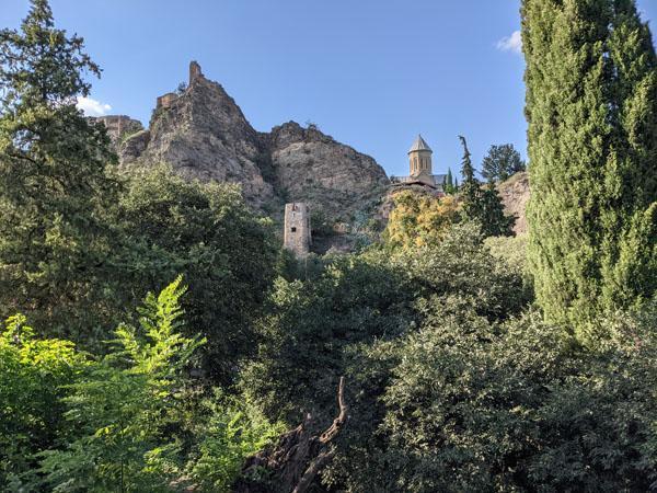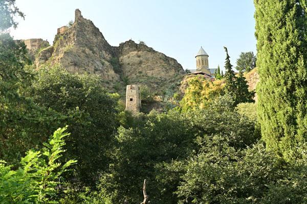 Depuis les allées du jardin botanique, on a une vue absolument exceptionnelle sur l’ancienne forteresse Narikala qui domine la ville haute de Tbilissi. Elle se compose de deux enceintes fortifiées sur une colline escarpée entre les bains publics et les jardins botaniques de Tbilissi. Sur la partie inférieure, restaurée récemment, se trouve l’église Saint-Nicolas.