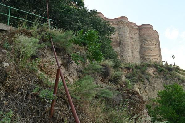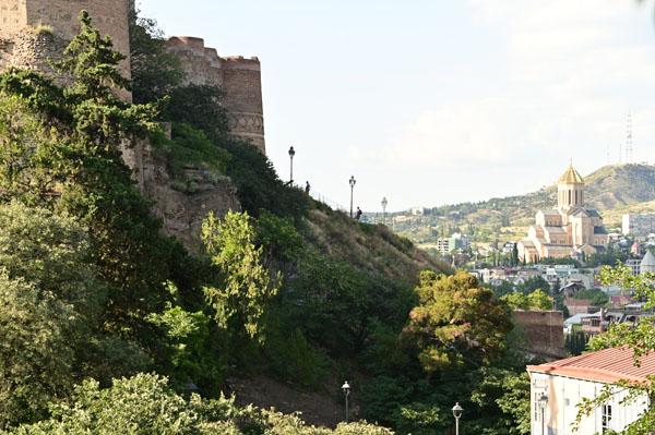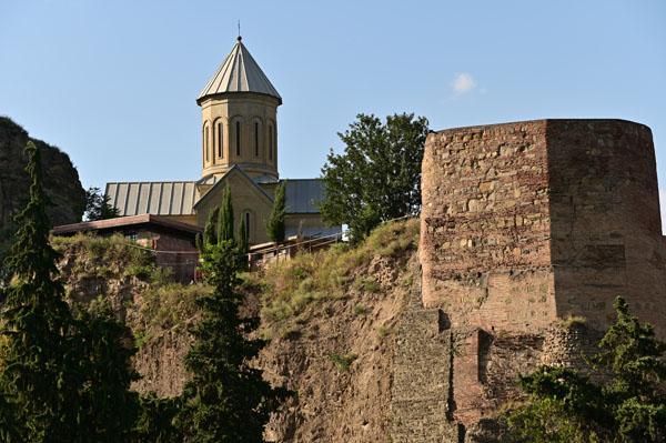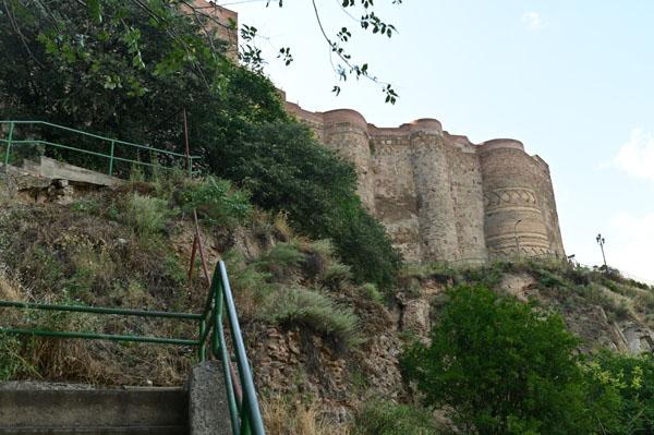 Vue du centre-ville, on ne voit qu’elle, somptueuse le jour et encore plus la nuit, la forteresse Narikala est dotée de murailles crénelées dominant la falaise. À elle seule, elle pourrait refléter l’histoire de toute la Géorgie. Érigée au IVe siècle sous la dynastie perse des Sassanides, c’était le « fort invincible » (Shuhis-Tsikhe).