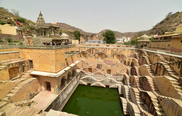 La route qui traverse le village s’arrête par un temple et son puits. Certes moins profond que Abhaneri Baori, mais suffisamment pour permettre aux habitants de s’alimenter en haut dans cette région semi-désertique.