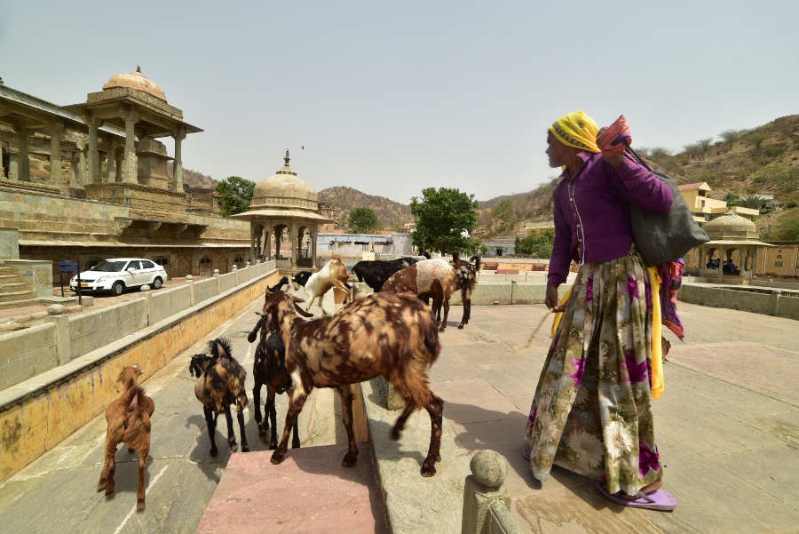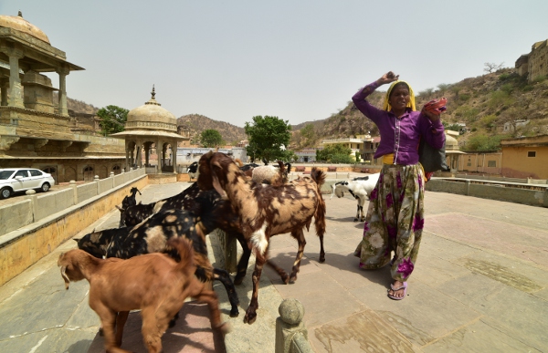 Sur l’une des terrasses du temple, une bergère et son troupeau ont décidé de faire une halte. Pas beaucoup d’herbe à brouter pour les chèvres !