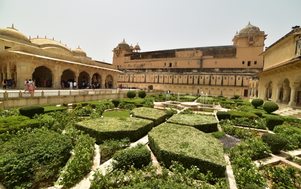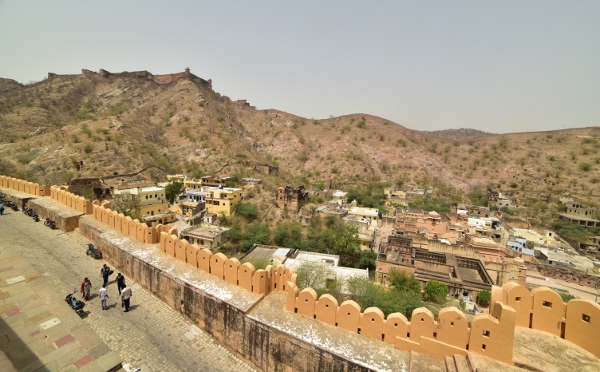 Amarré sur son piton rocheux, l’Amber palace est entouré d’une série de remparts longs de 9 km. Plus haut encore, on peut apercevoir une réplique de la citadelle. C’est un deuxième fort, Jaigarth, qui devait servir d’ultime refuge au maharaja en cas de prise de la citadelle.