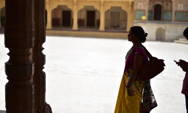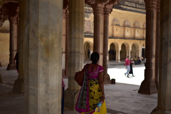 Pas question de me précipiter. Je prends tout mon temps pour m’imprégner de cette atmosphère unique qui règne sous cette forêt de colonnes de grès et de marbre où circulent avec majesté des indiennes en saris colorés.