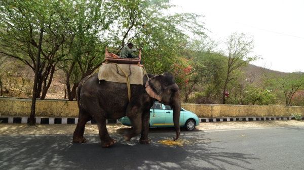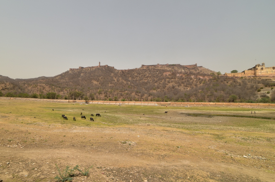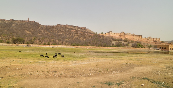 Dimanche 30 avril. On sort maintenant de la ville. À cette heure encore très matinale, ce n’est pas encore la cohue de toutes les grandes villes indiennes. Le trafic est encore supportable et une petite demi-heure plus tard, nous voilà sur la rive opposée à l’Amber Palace, l’ancienne capitale-forteresse d’Amber.