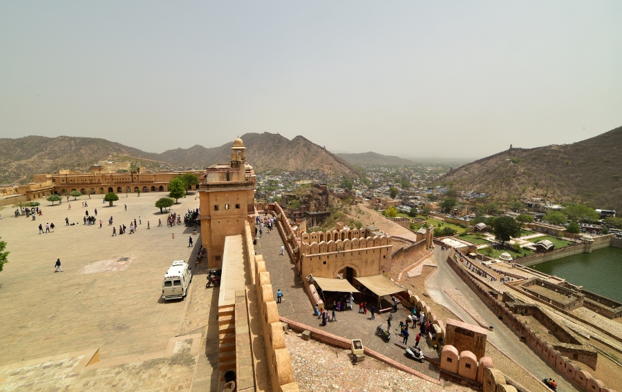 L’ascension vers le fort est une expérience en soi. La manière traditionnelle de s’y rendre est à dos d’éléphant, offrant une approche majestueuse qui rappelle celle des dignitaires d’autrefois. Arrivé au sommet, la vue panoramique sur la vallée et le lac Maota est spectaculaire, rappelant la valeur stratégique du site.