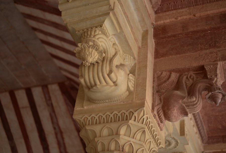 Son architecture impressionnante fusionne l’austérité défensive d’une forteresse (le fort) avec la délicatesse ornementale d’un palais. Construit en grès rouge et marbre blanc, il dévoile une succession de cours, de pavillons et de jardins où se mêlent influences hindoues et mogholes. Des éléments comme le Diwan-i-Khas (salle des audiences privées) aux colonnes finement sculptées, les appartements des femmes du zenana organisés autour d’un patio commun, ou le célèbre Sheesh Mahal (palais des miroirs), où une seule bougie pouvait illuminer toute la pièce grâce à des milliers de miroirs incrustés, illustrent un génie à la fois esthétique et technique.
