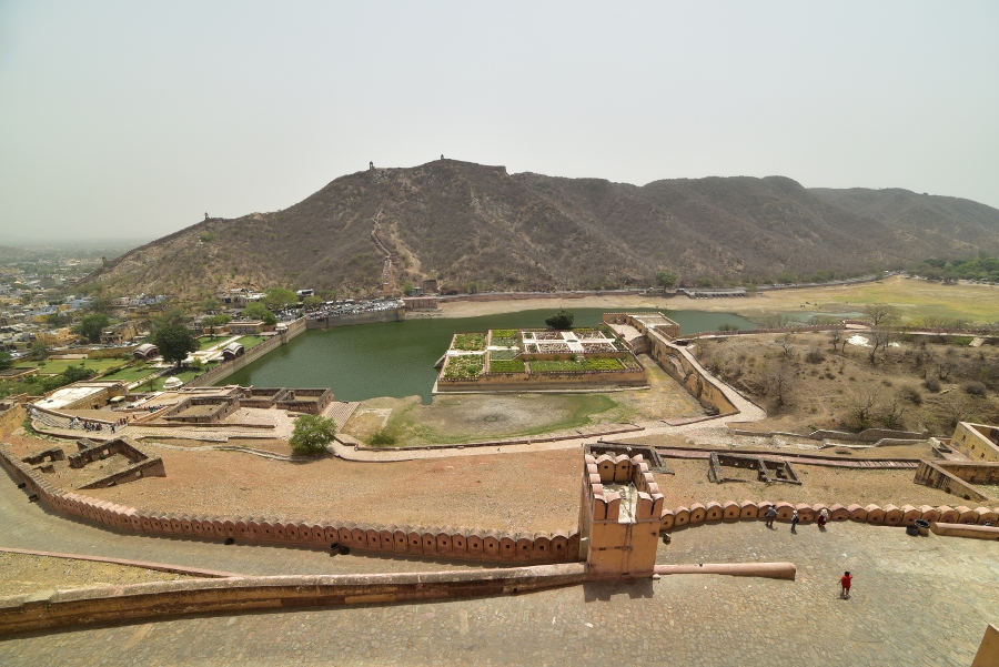 Depuis la rive, on comprend tout de suite l’importance du site. À 11 km au nord-est de Jaipur, Amber fut pendant des siècles la capitale des maharajas de Jaipur. La citadelle fut toutefois entièrement remaniée au XVIe siècle par Man Singh I. Elle commandait alors une gorge étroite et stratégique sur la route de Delhi.
