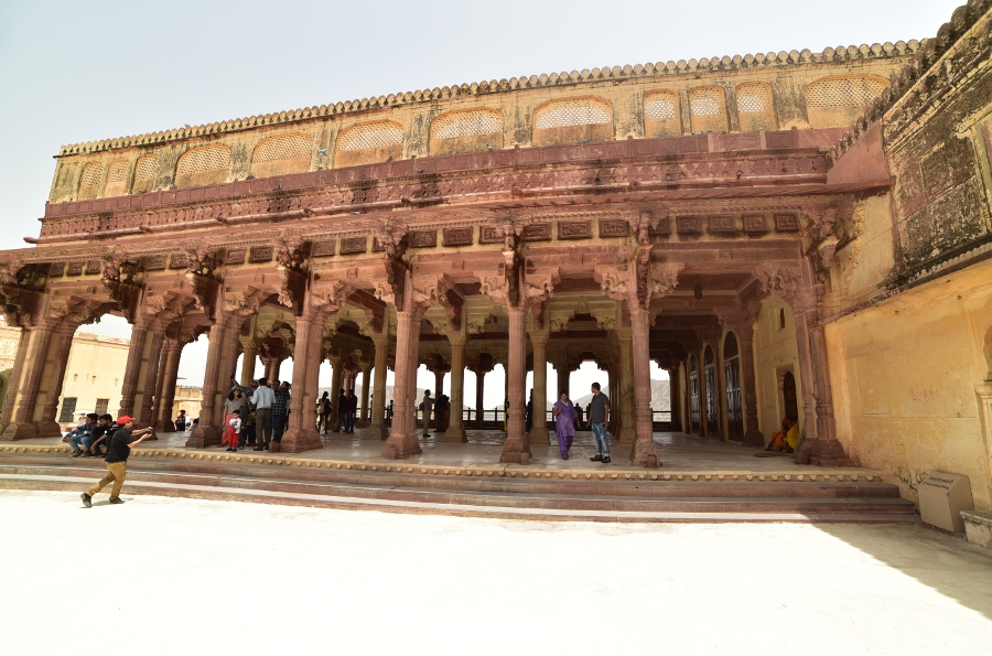 Commencez par la grande cour principale (Jaleb Chowk), où se tenaient les parades militaires. Pénétrez ensuite dans le palais par l’escalier monumental menant au Diwan-i-Am (salle des audiences publiques). Explorez les appartements privés (Zenana), leSheesh Mahal(palais des miroirs) où une bougie illuminait toute la pièce, et le Sukh Niwas (salle du plaisir) climatisée par un système ingénieux d’eau courante. Les jardins et les terrasses offrent des vues à couper le souffle sur le lac Maota et les remparts.