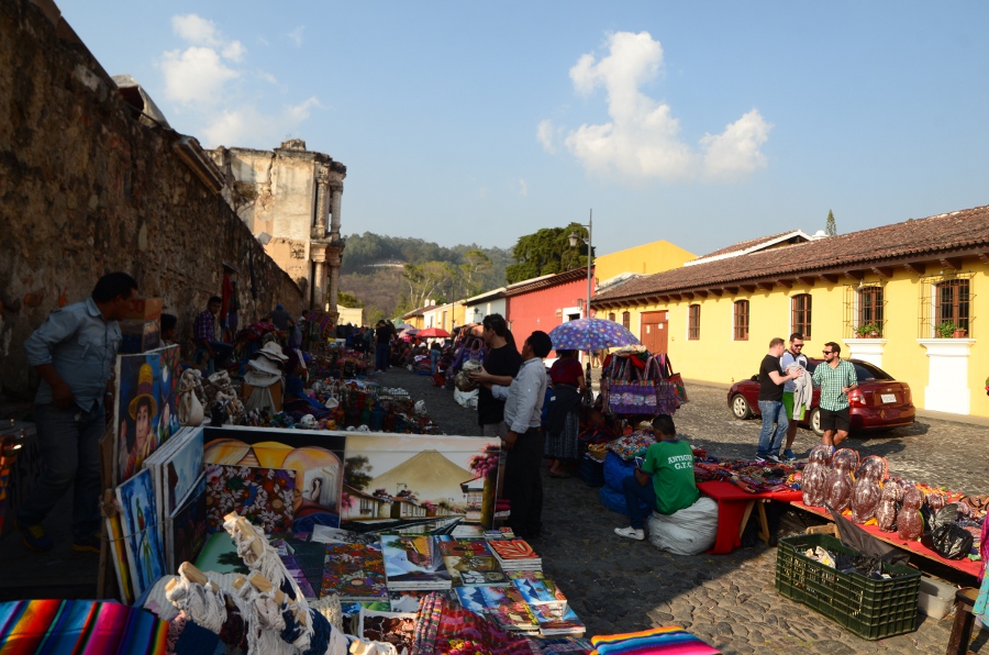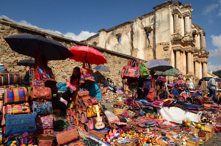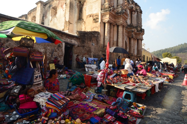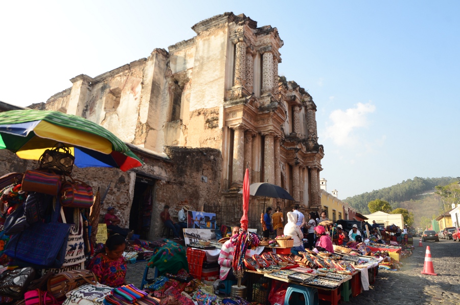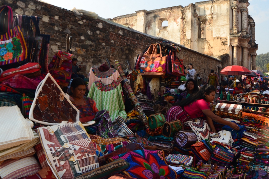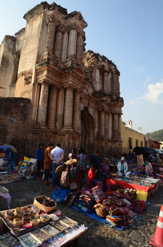 Antigua fut édifiée en plein coeur de l’empire maya. Pour s’en convaincre, il suffit de baisser les yeux et de les porter au pied de l’église del Carmen. C’est ici que se niche le marché le plus coloré de la ville où les indiens viennent encore proposer aux touristes et aux habitants le fruit de leur artisanat.