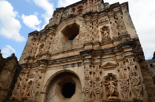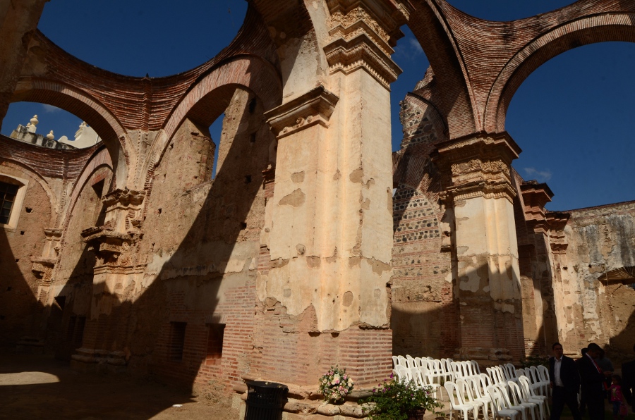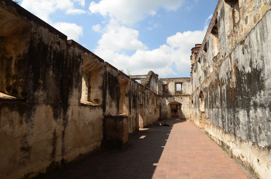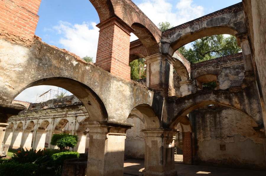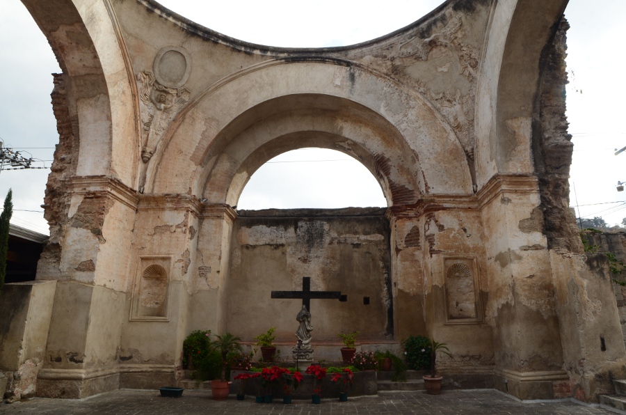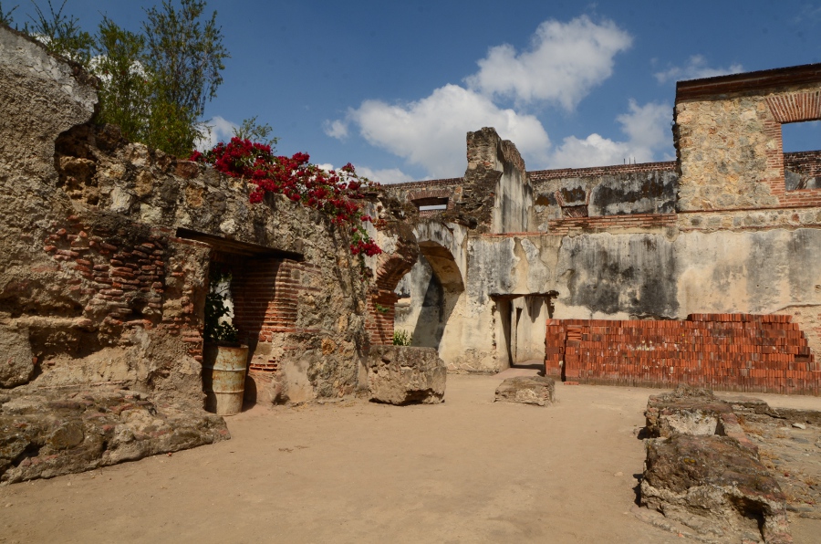 Je poursuis la visite à la recherche des trésors monumentaux d’Antigua. Murs décrépis, fenêtres ouvertes sur le vide, coupoles donnant sur le ciel bleu, herbes folles et pans de murs à moitié démolis… Voici le couvent Santa Clara.