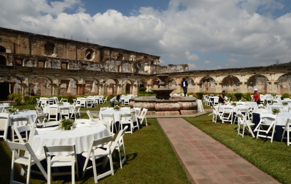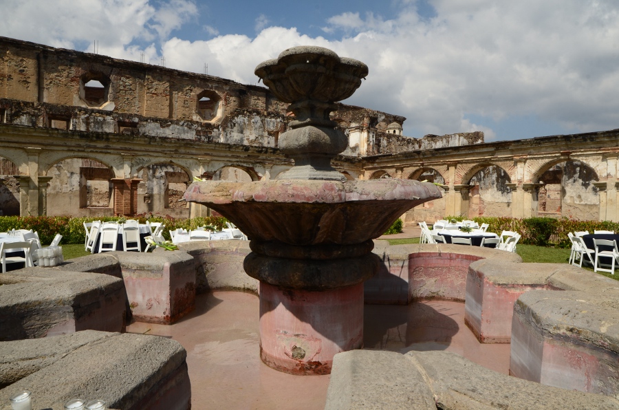 Une des plus belles ruines de la ville. Nostalgie cruelle et stigmates des précédents tremblements de terre. Sous ces ruines grandioses, la vie continue et s’organise. Tiens, on prépare un mariage ! Les tables blanches sont dressées au milieu du cloître, organisées autour de la superbe fontaine du XVIIe siècle.
