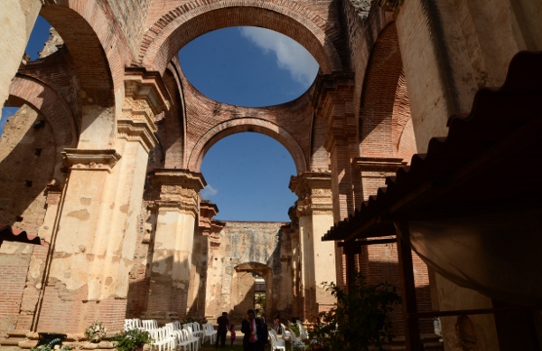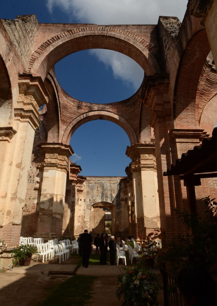Au détour de la calle Poniente, je jette un coup d’œil rapide vers les jardins de la cathédrale où se prépare une réception de mariage. En tordant le cou, on peut apercevoir les ruines de la cathédrale, ses pans dressés vers le ciel, ses ouvertures donnant sur un coin de ciel bleu et ses coupoles béantes.