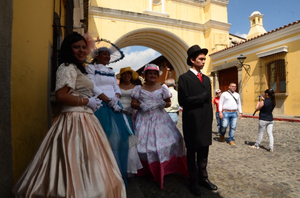 Retour avenida 5. Des mariés et leurs amis prennent la pause à l’ombre de l’avenue la plus chic d’Antigua.