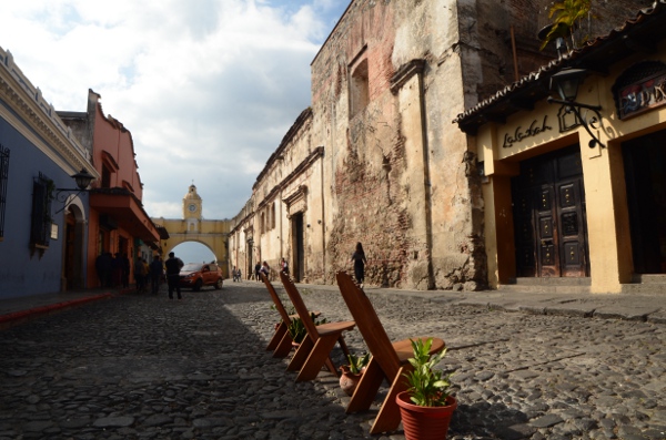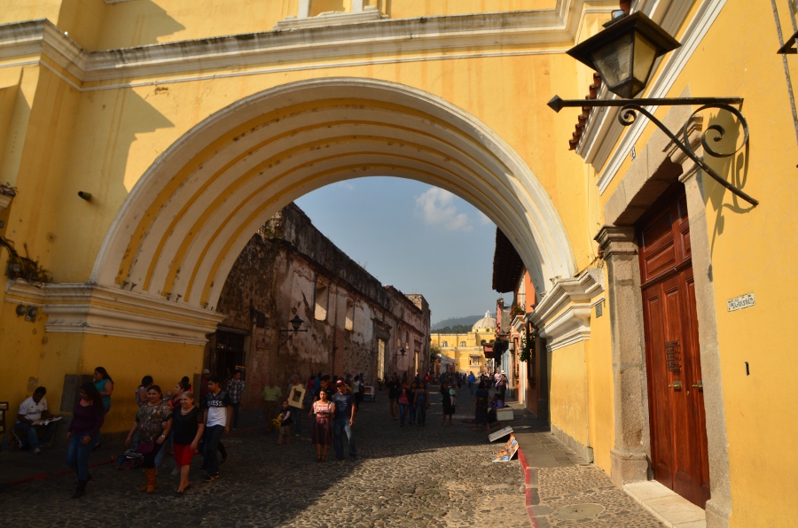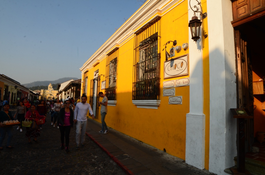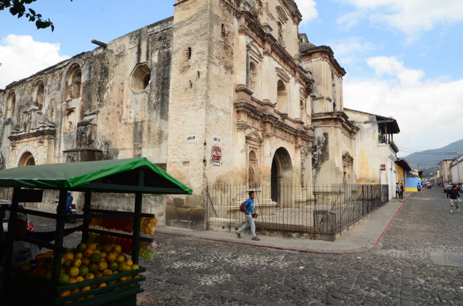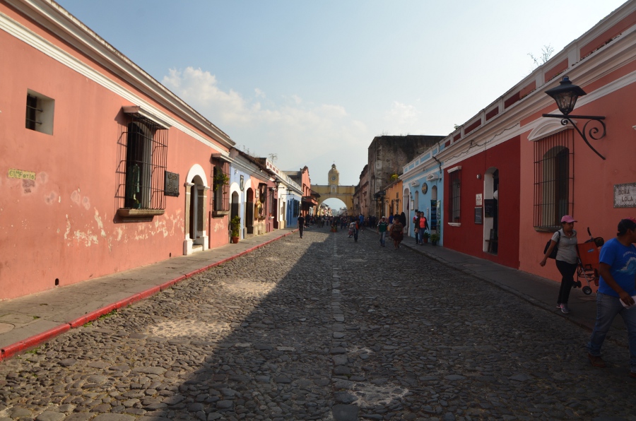 Dimanche 29 janvier. Ce dimanche, je me lève de très bonne heure pour partir à l’assaut des secrets d’Antigua. Autant le dire tout de suite, c’est un vrai coup de cœur. À partir d’ici, je vais rayonner pendant près d’une semaine. Et je ne le regrette pas. Dès les premiers moments, je tombe véritablement amoureux de cette vieille ville aux pavés tricentenaires, aux façades colorées et délavées, ruines à chaque coin de rue, murs écorchés, écornés, comme des plaies infligées par le temps, et pourtant toujours debout, vaille que vaille malgré les pluies de l’été et les tremblements de terre.