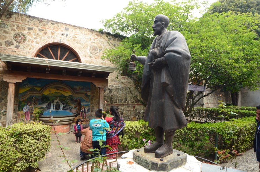 J’irai partout aujourd’hui. J’irai jusqu’au bout de la ville, jusqu’à cette vieille Iglesia San Francisco qui reste encore l’une des églises les mieux conservées d’Antigua. Et qu’importe, si je ne puis rentrer à l’intérieur. À l’heure de la messe, la foule est dense et les Indiens nombreux. Certains passent par le jardin pour rejoindre directement la petite chapelle où est enterré le père José de Bétencourt. Des Mayas s’agenouillent au pied de son immense tombeau et prient en récitant leurs prières. Le prêtre consacra toute sa vie à la misère humaine et aux enfants déshérités… Il reste la figure emblématique du Guatemala.