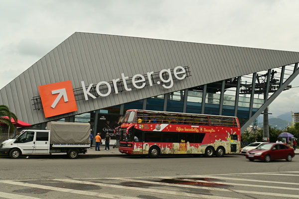 La Wonderland Guesthouse se trouve à quelques minutes du bord de mer de Batoumi. En une dizaine de minutes, on se retrouve vite sur le boulevard qui longe la mer Noire. Au passage, nous allons faire quelques magasins en quête de petits souvenirs à ramener en France, ma fille tient à acheter quelques babioles à offrir à ses amis. Quelques minutes plus tard, nous voici enfin sur le front de mer, à deux pas de la cabine de téléphérique qi permet d’accéder au promontoire qui domine la ville balnéaire.