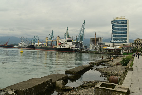 À défaut de baignade, nous allons faire un petit tour sur le port de Batoumi, qui reste l’un des plus importants de la mer Noire. Mais bon, autant le dire franchement, mis à part la mer, la baignade, les restaurants branchés de la côte et les boîtes de nuit, qui, dès la nuit tombée, crachent leur son tout le long de la promenade, il n’y a pas grand-chose à voir dans cette ville.
