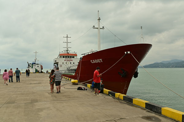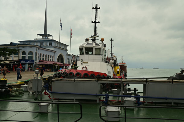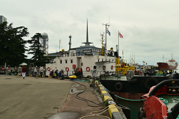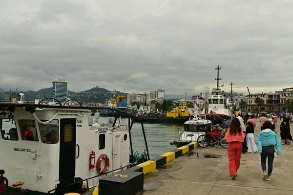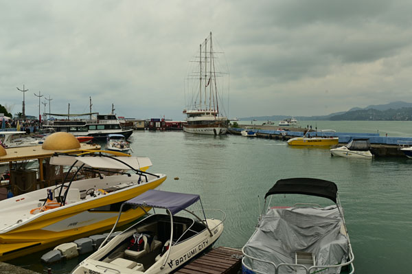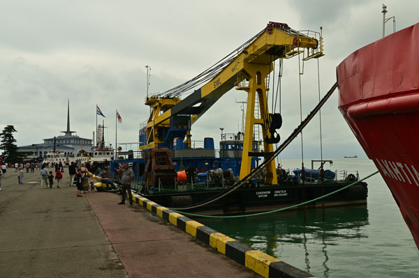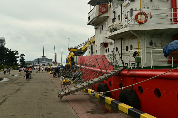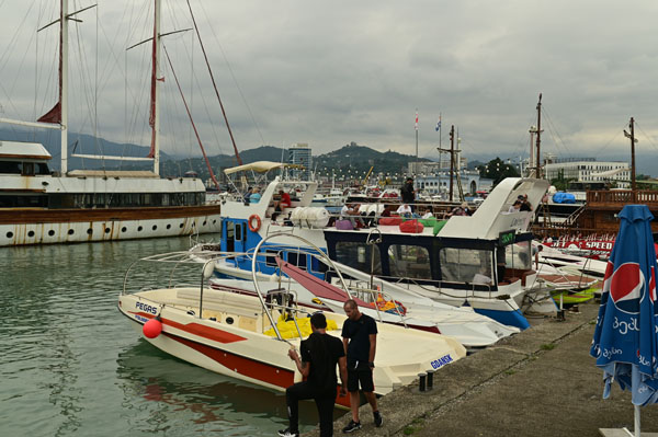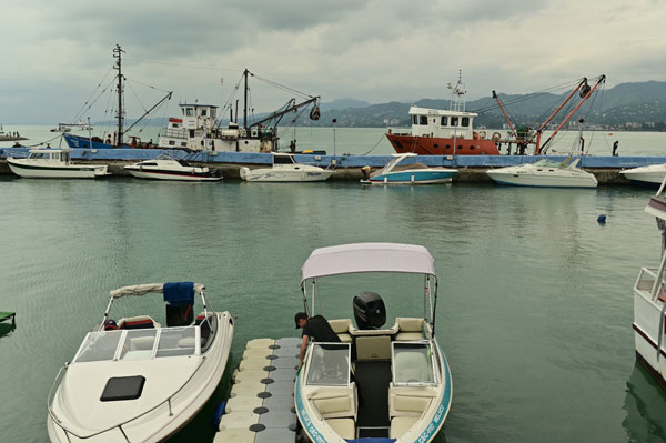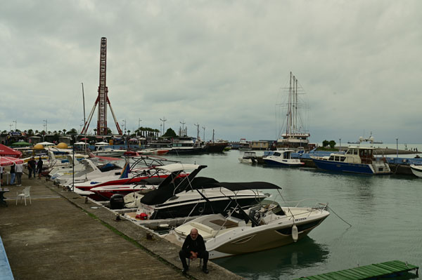 Nous allons nous frayer un passage parmi la foule des touristes (beaucoup de Russes viennent ici pour profiter de la baignade et des nombreuses infrastructures hôtelières de la station balnéaire), et nous allons visiter le port où se mêlent très rapidement bateaux de commerce et embarcations de plaisance.