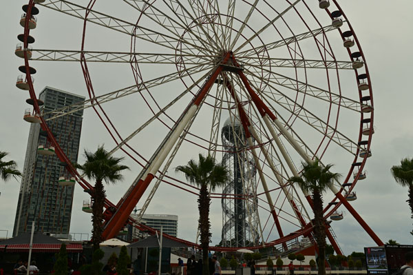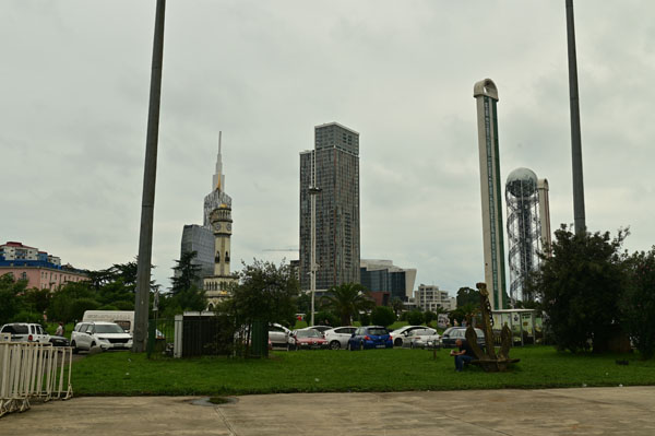 Mercredi 13 juillet. Il est un peu plus de 13 h 30 quand nous arrivons finalement à Batoumi. Au final, nous n’aurons pas mis beaucoup de temps. La route devient plus rapide une fois arrivés le long des rives de la mer Noire. Les bus arrivent en plein centre de la ville entre le bord de mer et les hôtels de luxe qui bordent les grands boulevards.