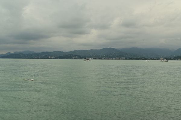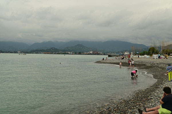 Pour cette journée au bord de la mer Noire, la chance n’est pas de notre côté car le beau temps est loin d’être au rendez-vous. Ma fille voulait absolument faire un petit crochet par la mer pour se baigner, c’est loupé. Du coup, je commence à regretter de n’être pas passé par Koutaisi que j’avais prévu dans ma première trame de voyage, mais auquel j’ai dû renoncer pour faire plaisir à Léa. Tant pis, ce sera pour une autre fois.