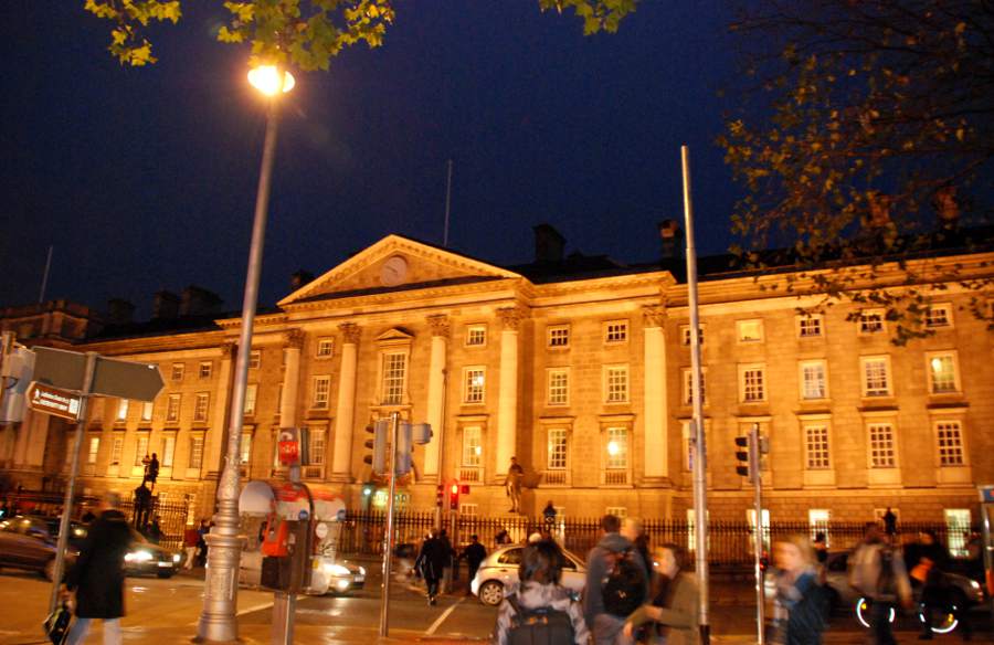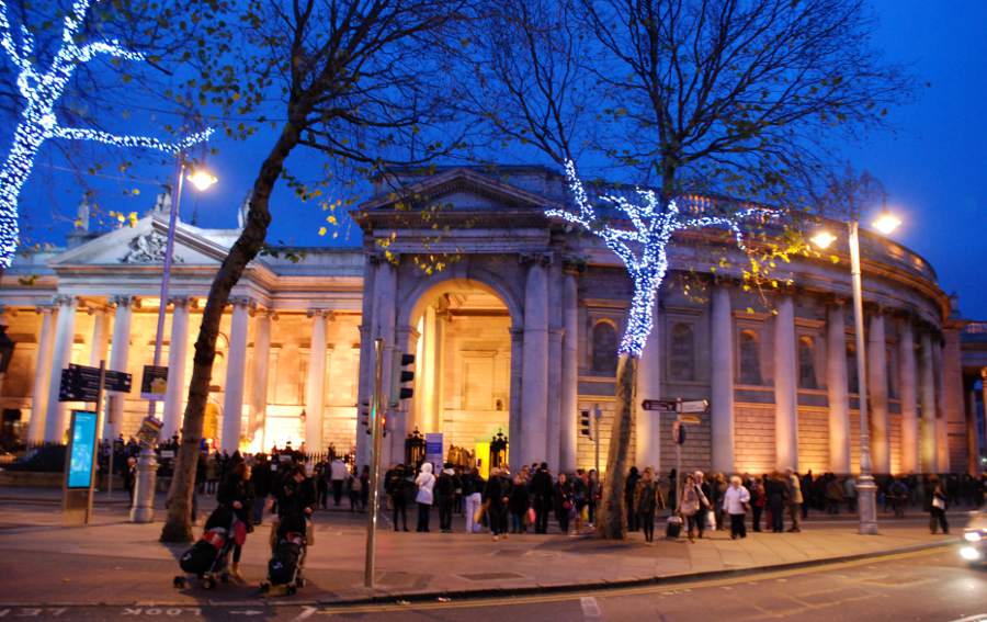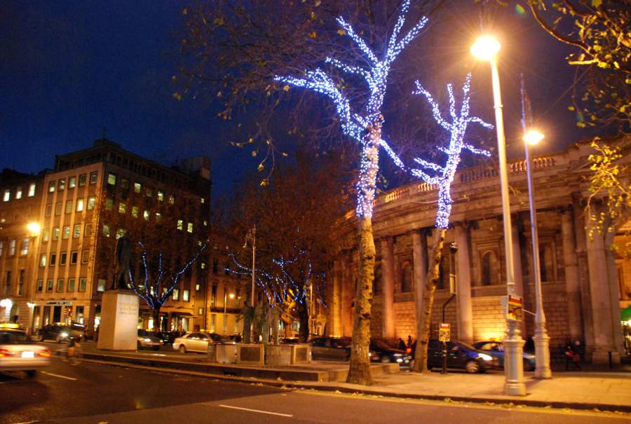 Je remonte à pied Grafton Street, longe Saint Stephen’s Green et ses belles pelouses vertes, puis arrive sur Trinity College déjà fermé à cette heure. Les rues grouillent de monde autour de Grafton Street. Noël approche à grands pas et les guirlandes éclairées brillent de mille feux.