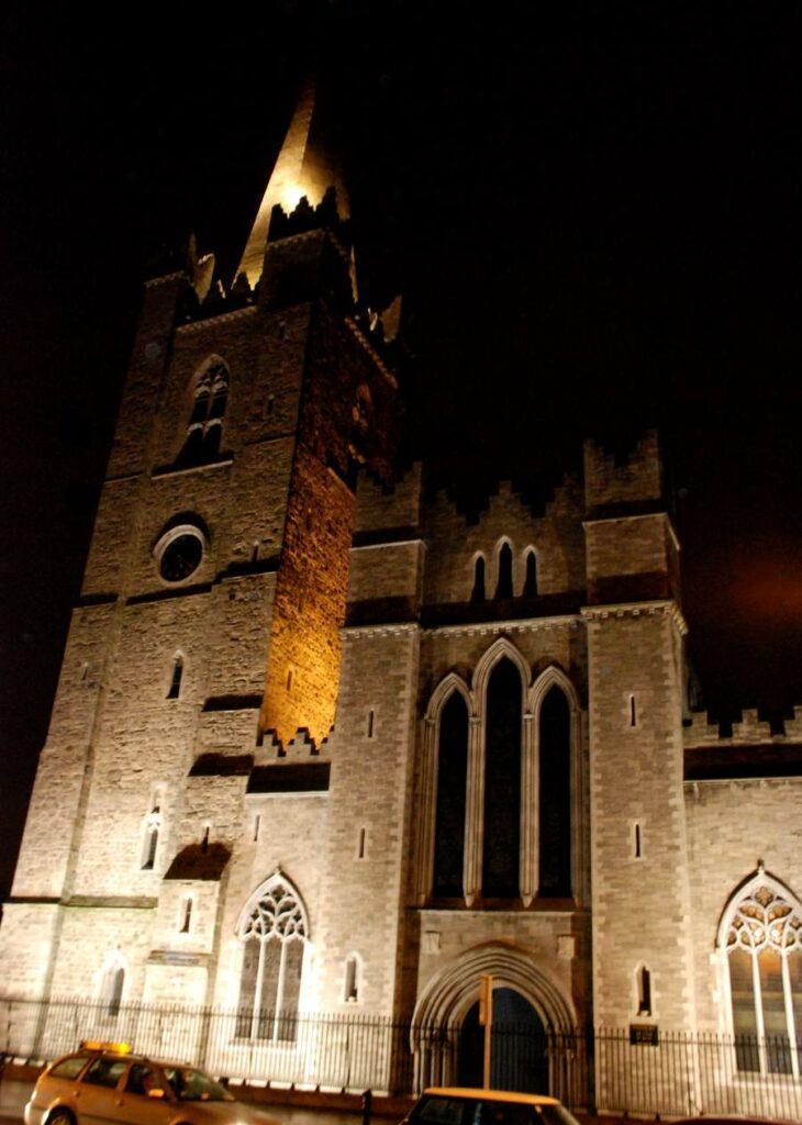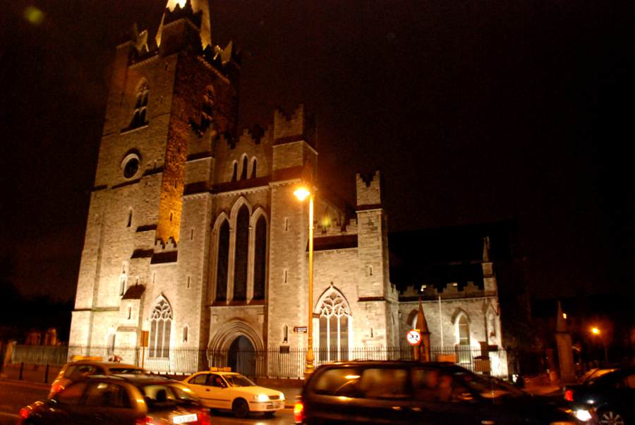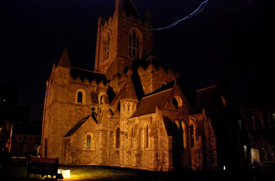Au bout de la rue, voici enfin Christchurch cathedral. Déjà fermée hélas. Fermeture des portes à 17 heures. Dommage. J’en fais quand même le tour pour en admirer son architecture si particulière, comme tout droit sortie du Moyen Âge ! Et pour cause. Construite au XIIe siècle par les Normands, elle a subi quand même une restauration néogothique assez lourde à la fin du XIXe. Je ne verrai pas non plus la tombe de Richard le Claire qui conquit Dublin au XIIe siècle et ordonna la construction du sanctuaire.