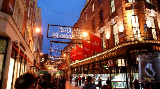Arrivée à Dublin de nuit, au cœur du quartier Dame Street