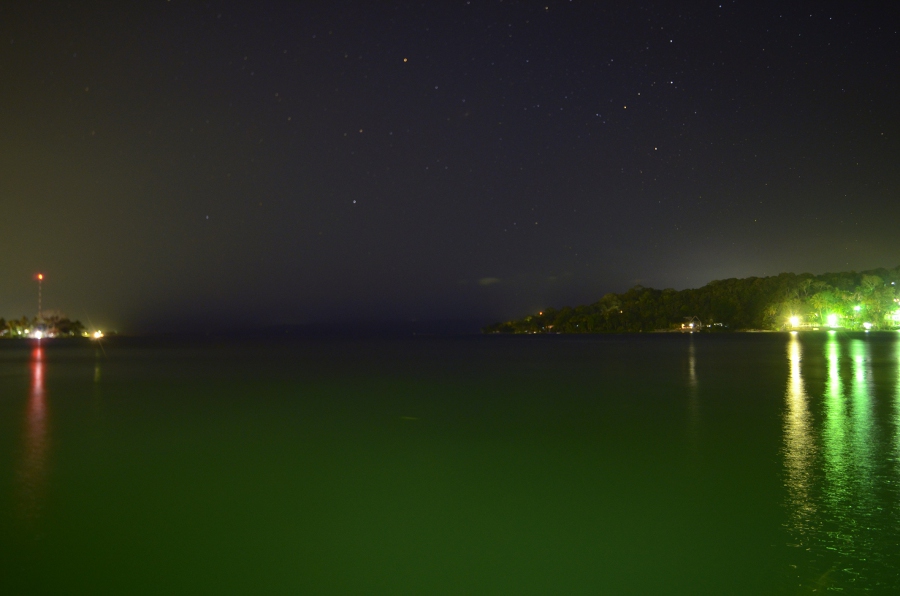 Bon, je profite de la nuit tombée pour essayer mon nouveau joujou : mon trépied photo. Essayons de faire quelques clichés des étoiles au-dessus du lac. 15, 20, 30 secondes de pose… Toujours la même histoire. Les phares des voitures (quand ce ne sont pas les tuk-tuks !) qui remontent la ceinture qui entoure la presqu’île viennent éblouir mes clichés. Mes trois amis Polaks qui m’observent du coin de l’oeil se fendent la poire. “Bon, oui, ok, ce n’est pas vraiment facile, mais moi, au moins, je ne me suis pas fait refiler des excursions hors de prix par Pedro le balafré… “