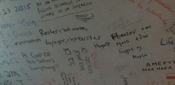 Petit coup d’oeil au plafond : “Rester c’est vivre, voyager c’est exister”. Merde alors, je n’ai jamais été aussi content de lire Victor Hugo que dans cet endroit perdu au bout du monde !