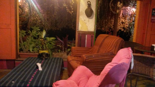 Bonne pioche encore, l’agence San Juan* se trouve à deux minutes de là et il fait encore jour pour que j’ai encore le temps de dire deux mots au gérant avant de poser ma valise à l’hôtel. Pas de bol. Victor me fait comprendre que ce n’est plus très rentable de faire du change avec les euros. Depuis la dernière édition du routard, la monnaie européenne a baissé au point qu’elle se négocie désormais au même prix que le dollars. Hugo accepte quand même de me dépanner. 7 quetzales pour un euros. Merde, et moi qui croyais en obtenir au moins dix. Ok, je ne donne qu’une petite partie de mes sous, et en profite pour booker mon excursion à Tikal, le lendemain, puis à Yaxha, le surlendemain. Bonne nouvelle, le prix des bus n’ont plus rien à voir avec Belize. Quelque chose me dit que j’ai mangé mon pain noir avec Belize et que je ne vais pas tout claquer. Allez zou, il est temps d’aller poser mes valises à La Casa de Lacandon*** (chambre sympa, simple, mais propre, et quelle vue sur le lac !), puis d’aller manger à El Jardin Maya*** (une tuerie !). Le temps d’enfourner un hamburger fait maison (avec deux bonnes tranches d’avocat !) et je retrouve mon moral. Au moins 8 au compteur. A la bonne heure !