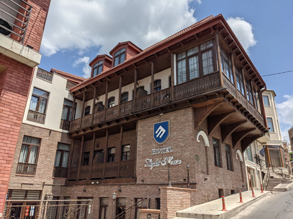 Jeudi 7 juillet. C’est vers cinq heures du matin que nous atterrissons à Tbilissi. Autant dire une plongée dans l’inconnu ! Étonnamment les choses vont aller très vite entre le moment où nous allons chercher nos bagages et notre arrivée à l’hôtel, Light House -Old City, en plein cœur de la ville.