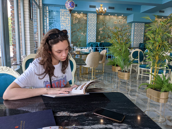 Mais avant de découvrir cette cité incroyable (qui va rentrer directement dans mon top 5 des plus belles villes du monde !), nous allons nous restaurer un moment à l’intérieur d’un des nombreux restaurants de la place Meidan. Bon, la bonne nouvelle, c’est que ma fille a l’air de bonne humeur aujourd’hui. L’autre bonne nouvelle, c’est que nous allons goûter à la cuisine géorgienne réputée dans le monde entier… Mais je ne vous en dis pas plus pour l’instant !