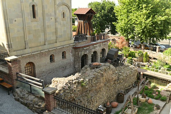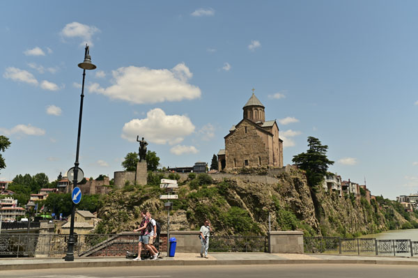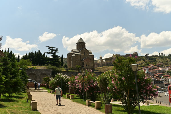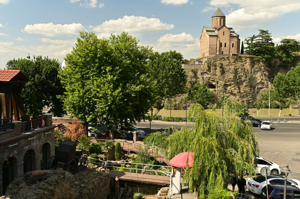 La voie piétonne mène directement au fleuve et au pont Metekhis qui nous transporte sur la rive orientale de la ville et son centre historique. En chemin, et en relevant la tête, on reste fasciné par la silhouette grandiose de l’église de Métékhis perchée sur un promontoire qui se dresse fièrement face à la rive opposée.