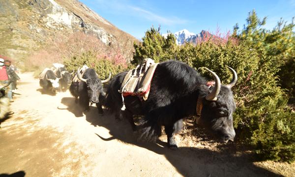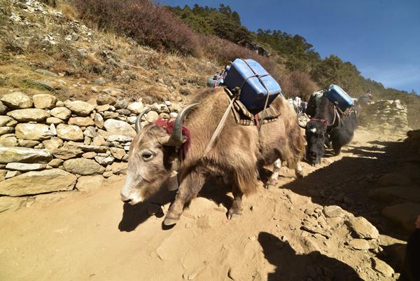 Plus loin, ce sont des troupeaux de yaks qui remontent le chemin, destination Namche Bazar où ils seront chargés de nouvelles marchandises à apporter à tous les villages isolés de la montagne.