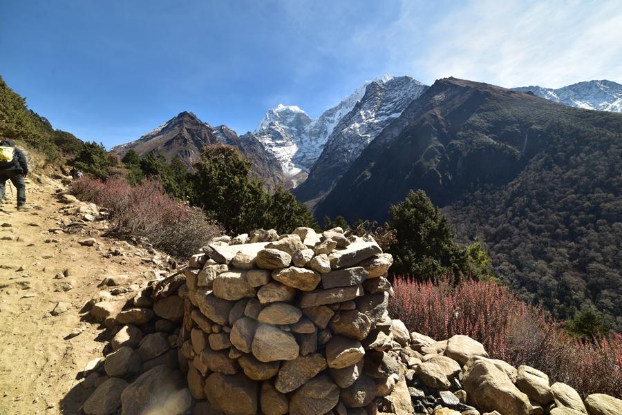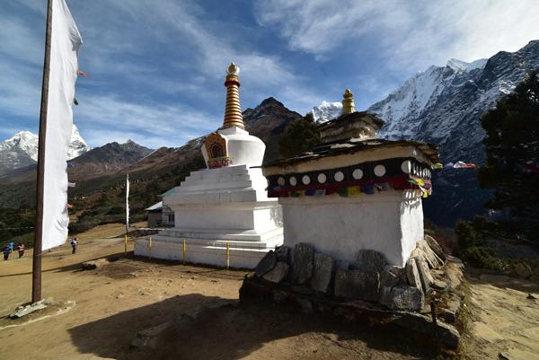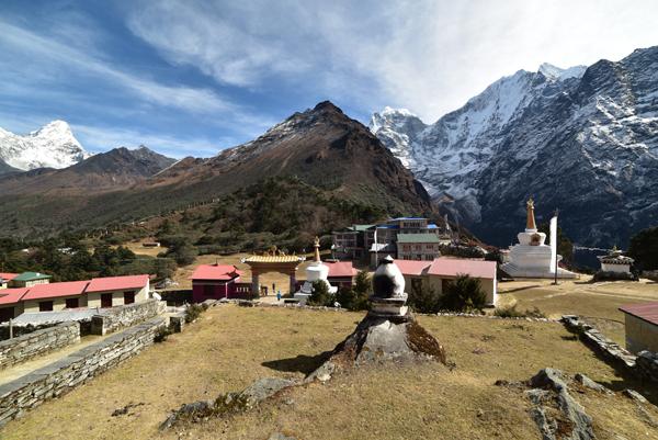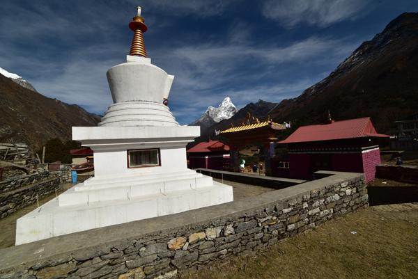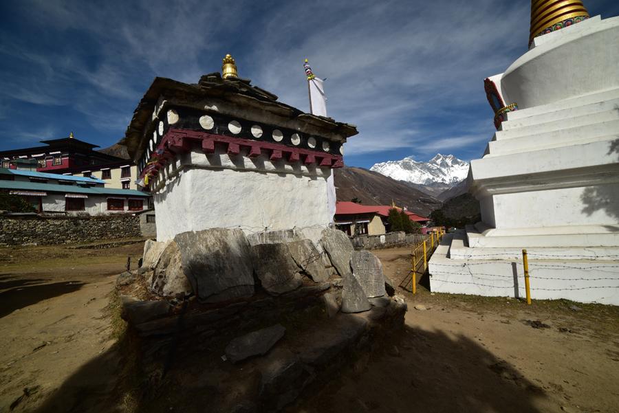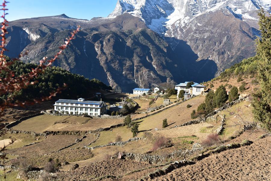 Le couvent de Deboche semble littéralement posé entre les différentes routes des sommets himalayens. Il semble tellement proche qu’on pourrait croire pouvoir les toucher du doigt.