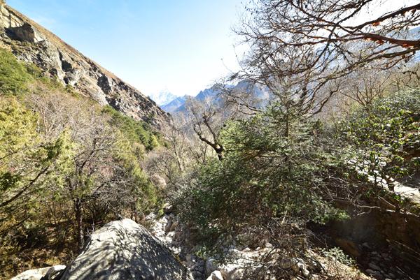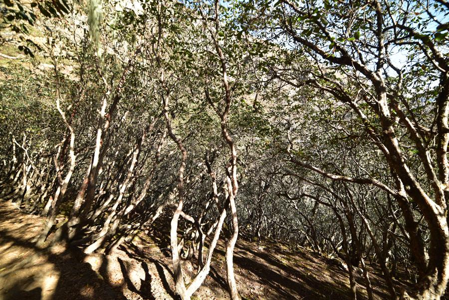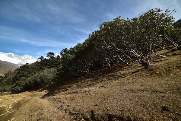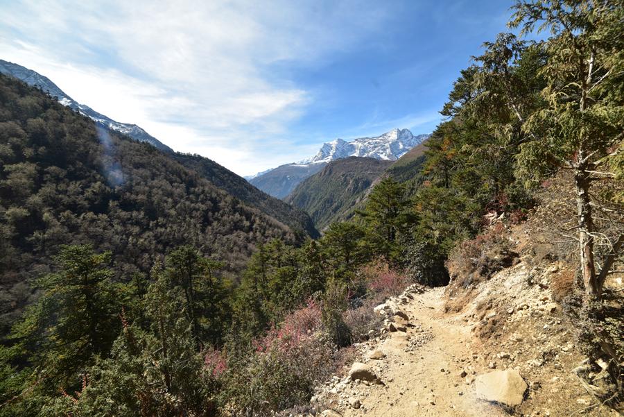 Après le chemin de crête, on s’enfonce dans une magnifique forêt de genévriers, de rhododendrons et de sapins himalayens. Autant le dire tout de suite… Une pure merveille !