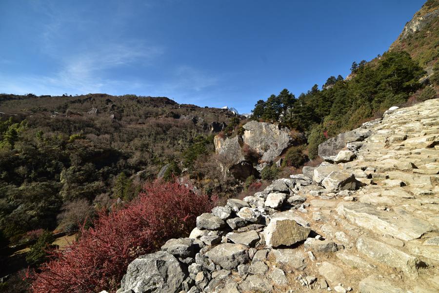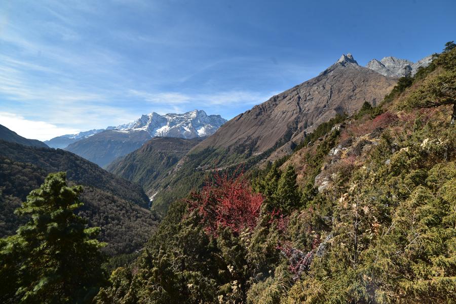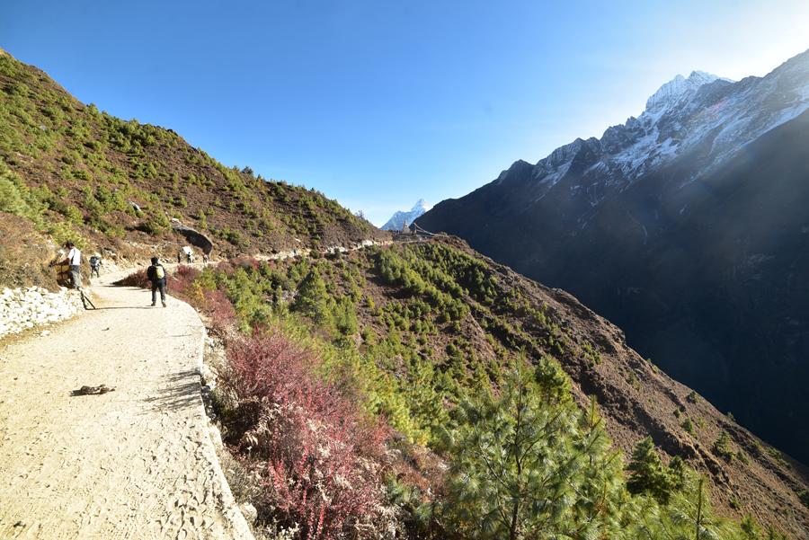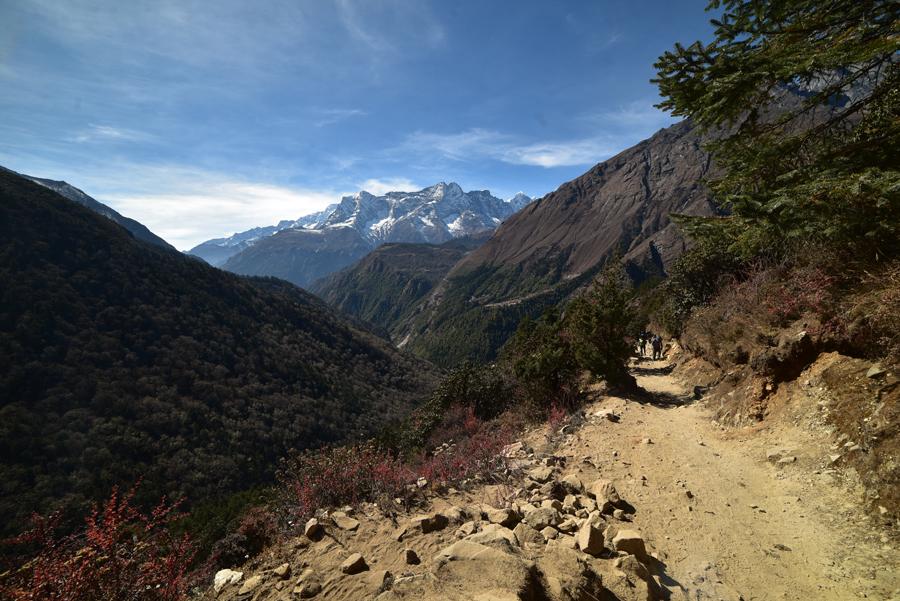 Mardi 14 novembre. Ce mardi me réserve l’une des plus belles journées d’ascension de tout le trek. Et pour cause, la première partie de la montée va emprunter un magnifique chemin de crête qui permettra d’admirer sans trop de difficulté la majesté des sommets himalayens.