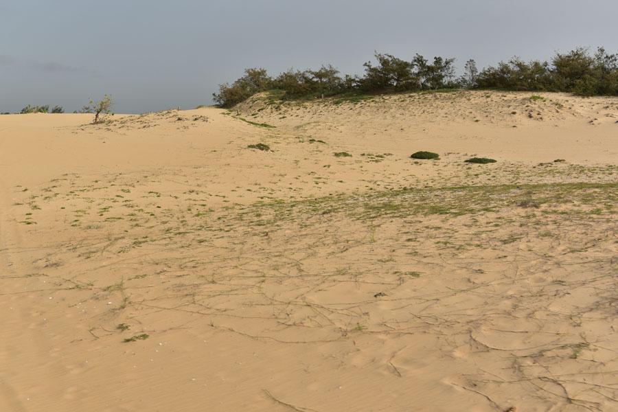 Du coup, je prends mon mal en patience et j’observe les petits arbustes qui tiennent encore la dune et qui ont survécu au massacre.