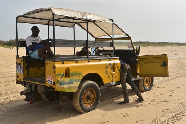 Bon, à vrai dire, ce genre d’activités, ce n’est pas vraiment mon truc, mais je ne veux pas vexer Yérim qui a mis un point d’honneur à organiser mon circuit. Du coup, je grimpe à bord d’une Jeep et nous voici partis pour un petit quart d’heure de gymkhana à travers les dunes du Lac Rose.