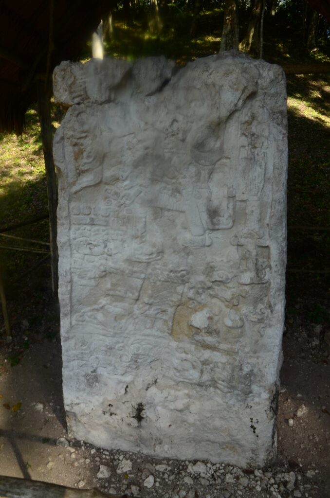 Au pied de la grande pyramide que l’on peut escalader se trouve de magnifiques stèles plutôt bien conservées qui retracent les grandes lignes de l’histoire de la cité de Yaxha.
