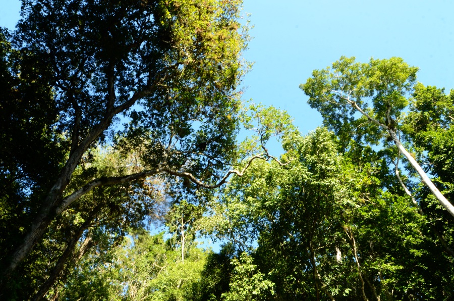 Des plantes épiphytes vivent au crochet des branches des grands arbres, renforçant encore la majesté des lieux. Superbe.