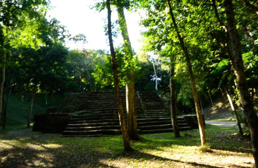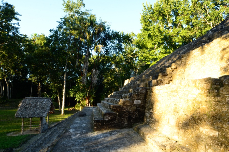 En début d’après-midi, départ pour Yaxha, sur la route de Belize. Avec Nakum, Yaxha possède la particularité d’être protégé par un large écran de verdure, une volonté réelle d’inscrire le site dans son environnement originel. Et c’est plutôt réussi.