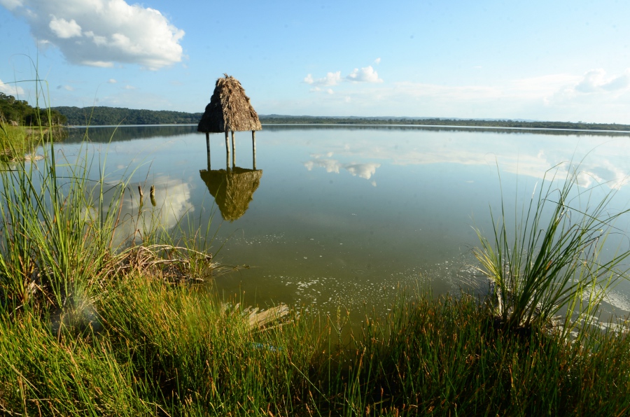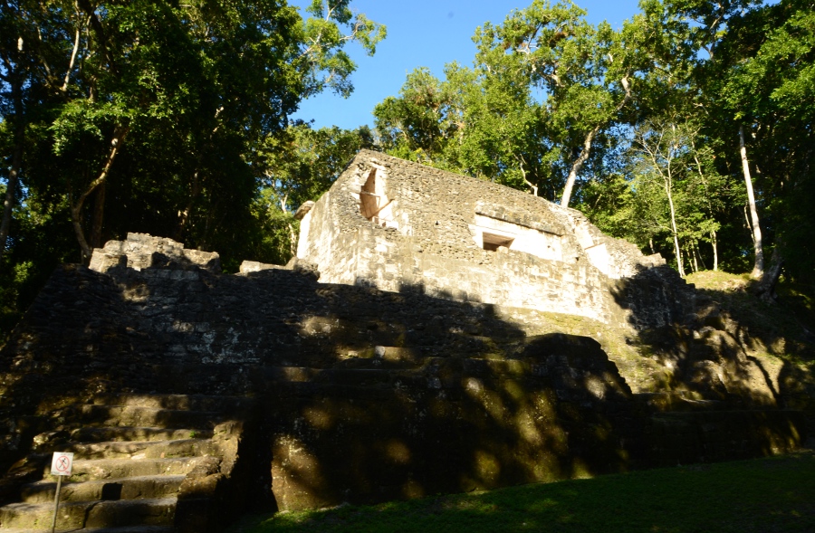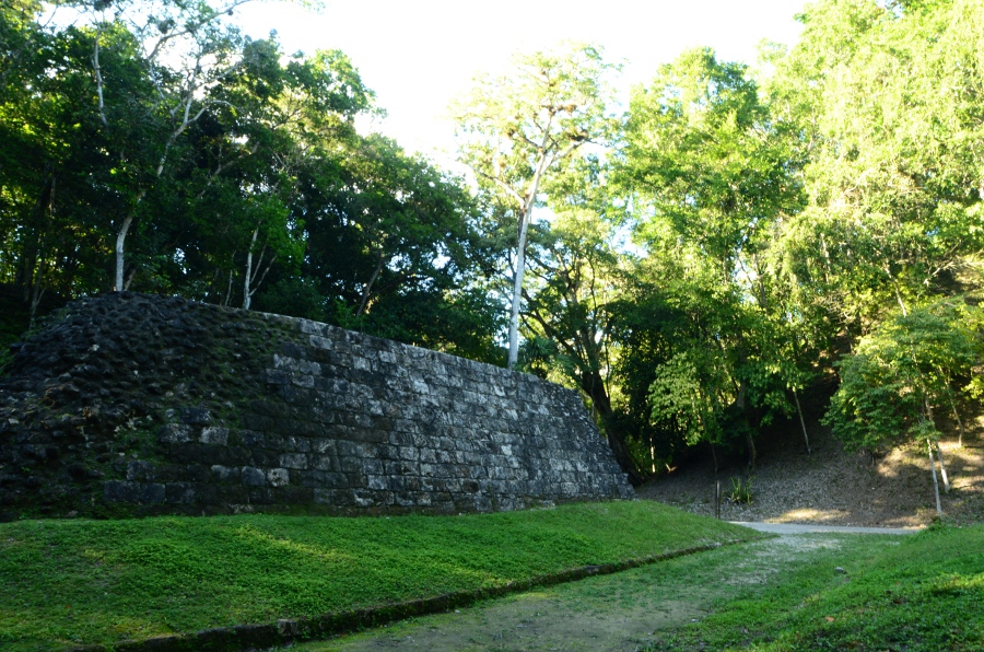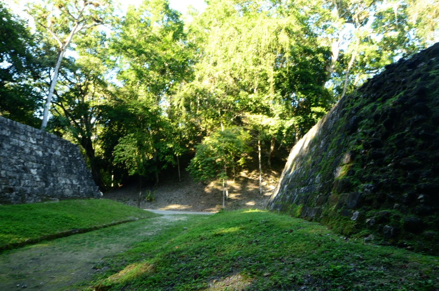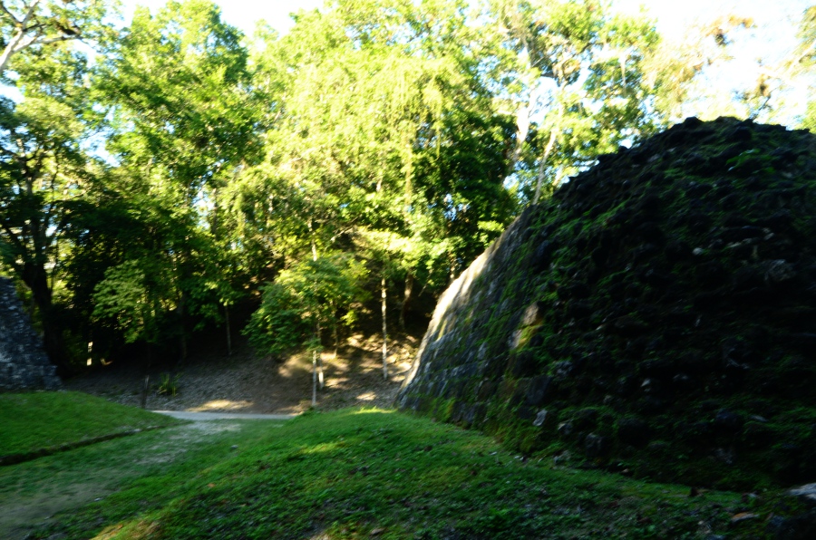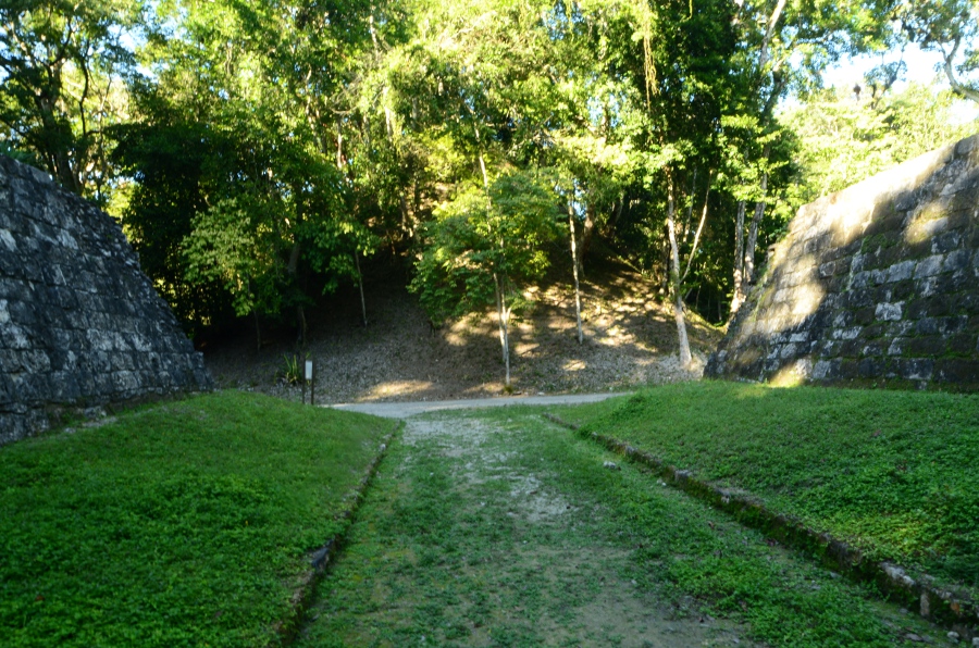 La visite continue le long d’un sentier bien balisé, une sorte d’avenue bordée de petites pyramides parallèles, certaines restaurées, d’autres encore couvertes de leur couverture végétale, dans un souci de préservation de l’environnement forestier. On arrive enfin devant la pyramide du temple 216. Son sommet offre la meilleure vue sur l’ensemble du site et le lac.
