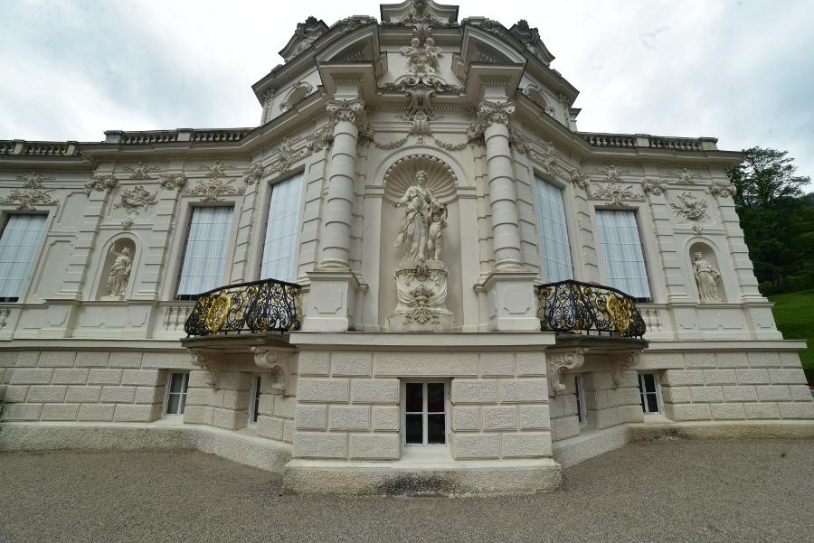 C’est en 1874 que Louis II décida d’aménager le pavillon de chasse de son père Max II en superbe petit refuge de style XVIIIe siècle, inspiré d’une de ses visites à Versailles. Et pour cause, tout ici célèbre l’incarnation de son idéal terrestre : le Roi-Soleil !
