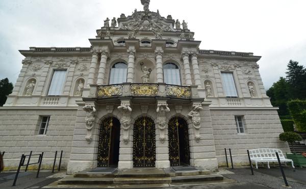 Petit château planté au cœur d’un vaste domaine. Normal, c’est en fait un simple pavillon de chasse que Louis II de Bavière a fait aménager pour bercer sa folie douce. C’est d’ailleurs un des seuls châteaux qu’il a fait ériger qui lui a vraiment servi de demeure… Il y a séjourné 15 jours par mois pendant 8 ans.
