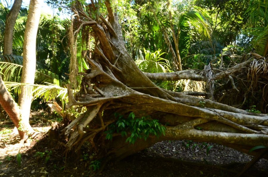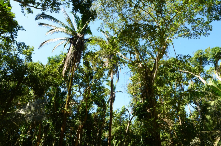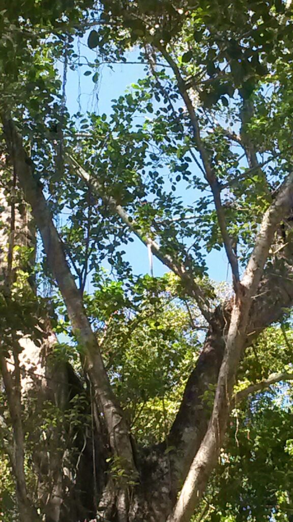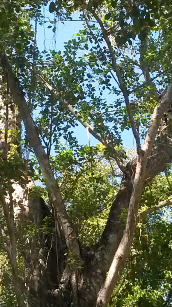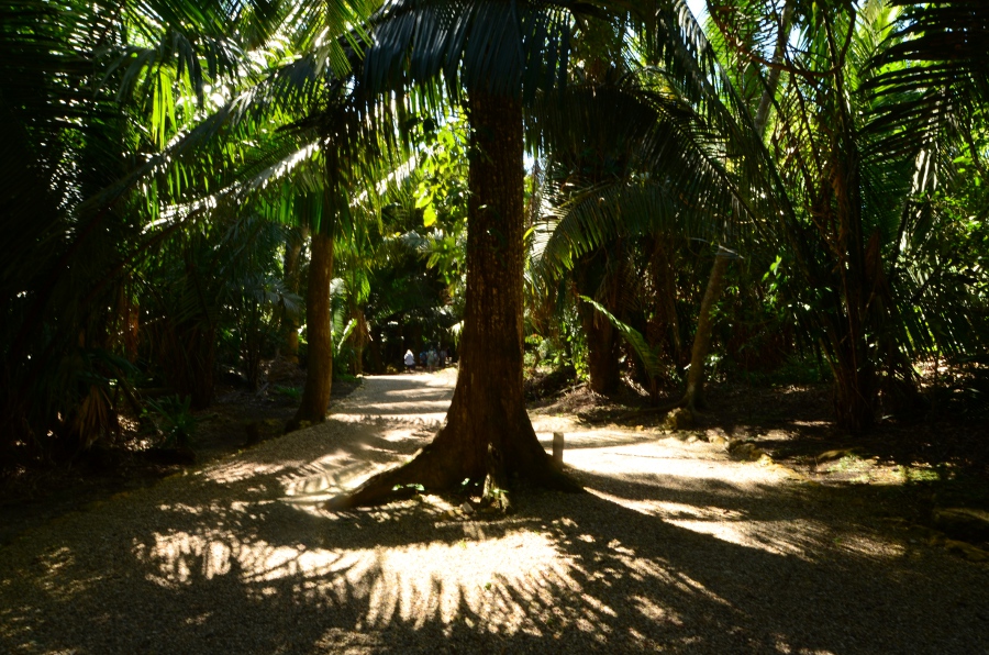 À peine le temps de se retourner pour admirer une dernière fois la majesté de la canopée, qu’on doit déjà faire route vers le temple aux masques de jaguars. « Oh eh ! Quand même, on n’est pas que du bétail ! » Le guide me regarde de travers. Quelque chose me dit qu’au milieu de la troupe des croisiéristes gringos de l’excursion, j’ai l’étiquette du vilain petit mouton noir. « Eh Pedro ! Tu veux que je te fasse faire la montée et la descente de la Tour Eiffel au pas de course quand tu viendras dans mon pays ? » Ok, le type fait la moue. J’en profite pour admirer l’extraordinaire canopée du site. Ces arbres sont d’une beauté incroyable.