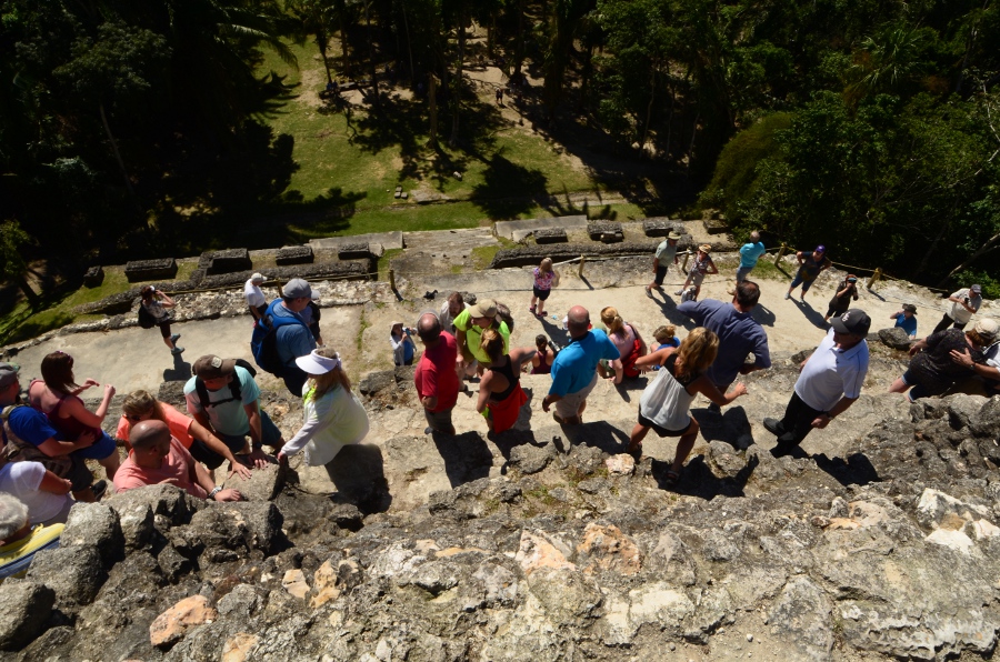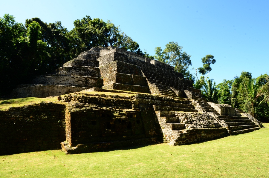 Le Temple Haut (High Temple) : Une pyramide de 33 mètres de haut qui domine la canopée. Gravir ses escaliers (avec prudence) offre une vue panoramique époustouflante sur la lagune de New River et la jungle à perte de vue.