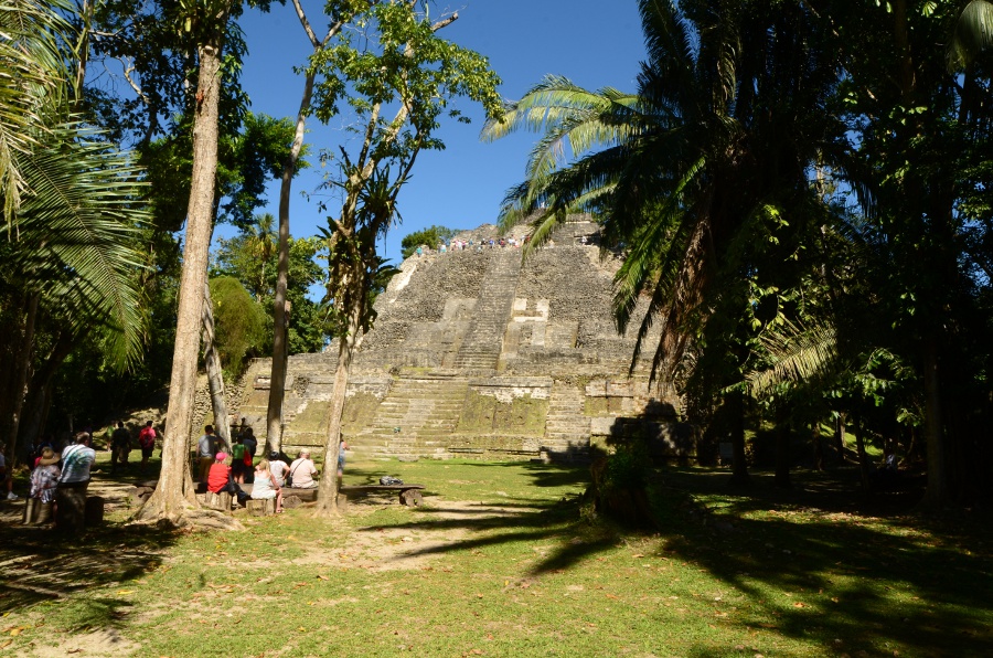 Bâti en 1500 av. J.-C., le site n’aurait été abandonné qu’à la fin du XVIIIe siècle. Lamanai signifie « crocodile immergé », et là aussi on comprend pourquoi, les méchantes bestioles infestent les rives de la New River. Passée l’entrée de la cité, on est tout de suite accueilli par la grande pyramide du Jaguar qui fait face à une autre pyramide beaucoup moins imposante.