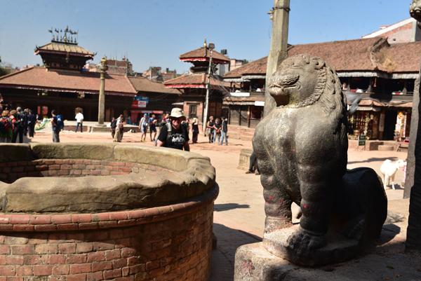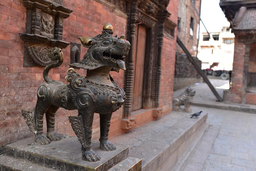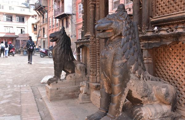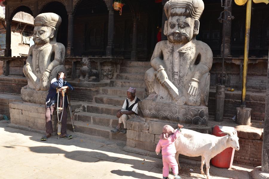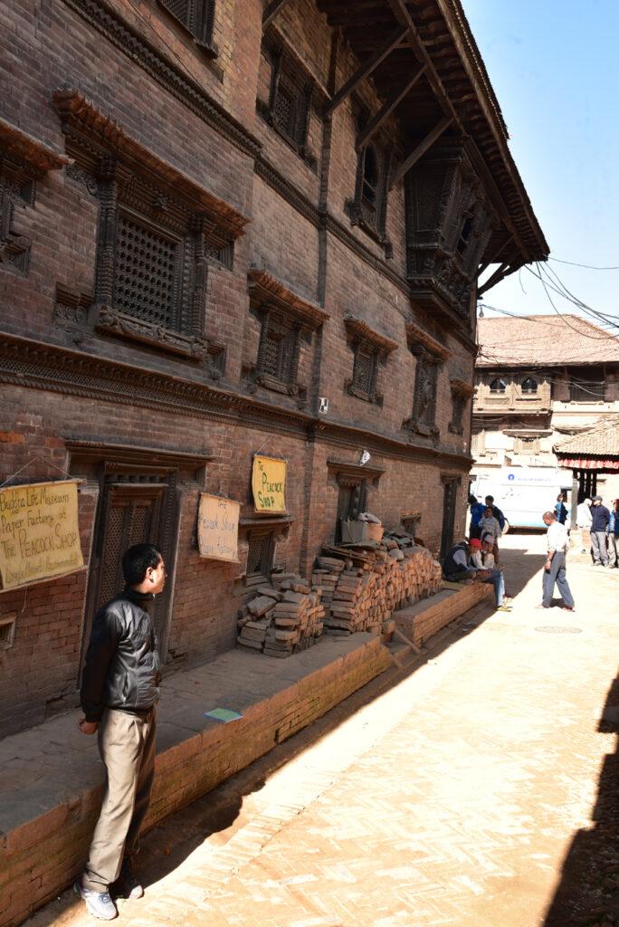 Vendredi 10 novembre. En s’enfonçant un peu plus au cœur de la vieille ville de Bhaktapur, on finit naturellement par déboucher sur la place qui abrite l’imposant temple de Dattatraya.