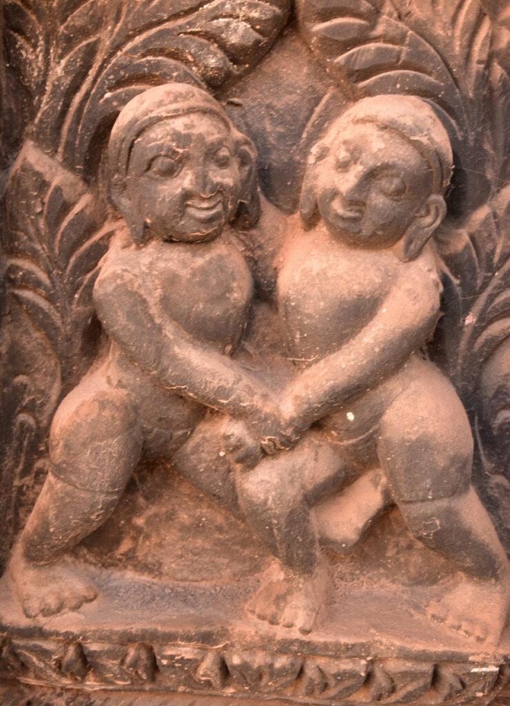 Deux autres lutteurs, cette fois-ci bien plus petits, ornent le temple lui-même.